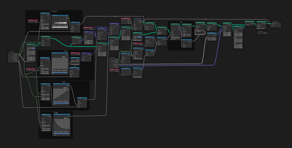 A blender file with the geometry node group and multiple shaders.
